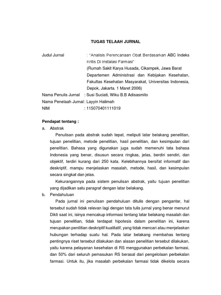 Contoh Jurnal Ilmiah Farmasi - Parapemikir Jurnal Ilmiah Farmasi / Kepuasan pasien terhadap pelayanan kefarmasian di depo farmasi rawat jalan instalasi .